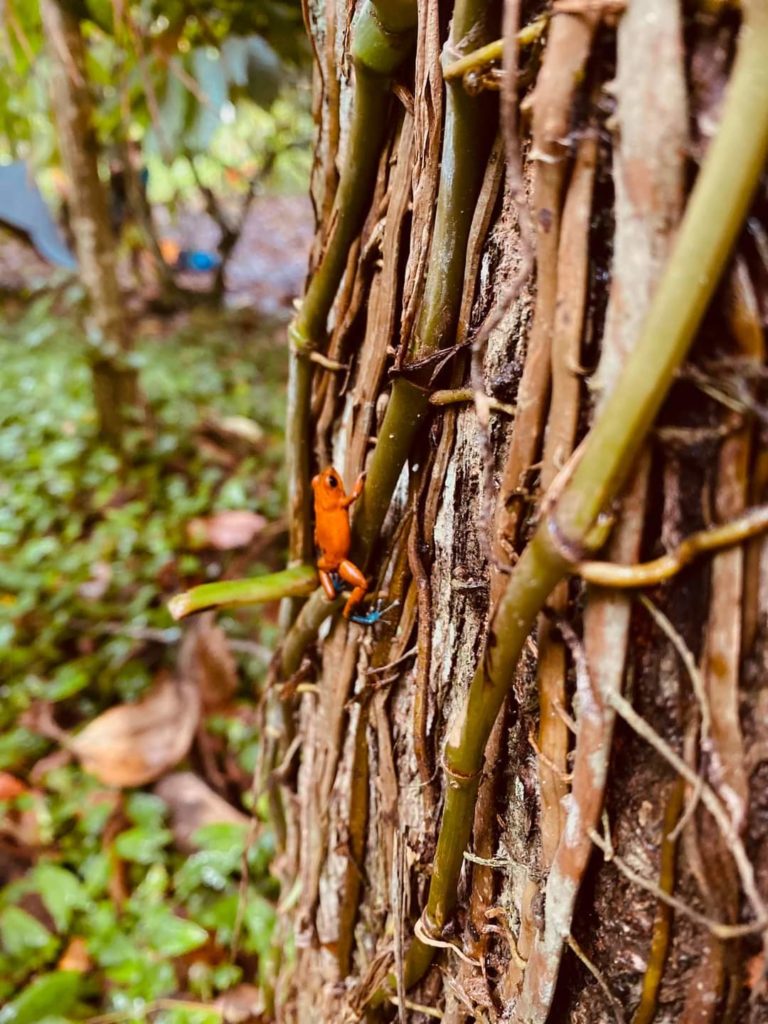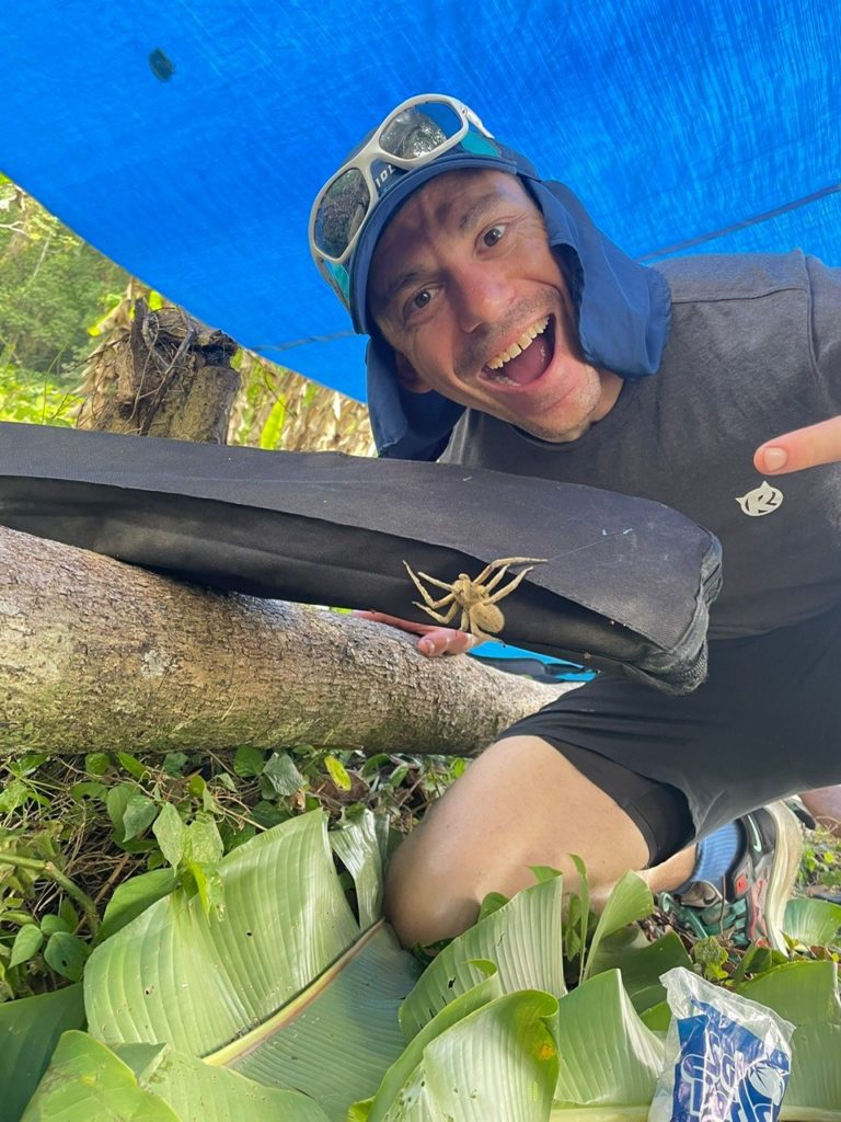 Death Frogs are these little red frogs that are highly poisonous- they use them to make poisonous darts out of. They were really scary!! We weren’t too fussed about spiders but were all petrified of these frogs! If one gets into your hammock, you’re not in a good place! Spiders were pretty impressive as well but supposedly the big scary ones were pretty harmless. I did wake up one night to find two on my mosquito net looking down on me, each one the size of my hand! And rehydrated food for nine days is not cool! When we came out of the jungle and met the support crew and they had some fresh fruit and pizza, that was the amazing!
